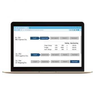 e-Bid Freightには、スポット案件と定期案件の2つのサービスがあります。スポット案件は、航空便、LCL、FCL、トラックなど様々な輸送モードをカバーする、ブラウザベースの運賃調達・管理サービスです。荷主は出荷ごとに、各キャリアの料金やサービスレベルを比較することができます。この度、スポット案件のサービスに以下の新機能を追加しました。