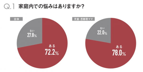 なかでも、6~15歳の子どもを持つ児童思春期ママは「悩みを抱えている」と回答した数が約8割にのぼります。子育て中のママたちに対する手厚いサービスやフォローが必要なことが伺えます。