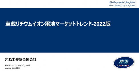 将来、実用化が期待される先端技術の情報を提供する沖為工作室合同会社(東京都町田市、CEO:沖本 真也)は市場調査分析レポート「車載リチウムイオン電池マーケットトレンド-2022版」の販売を2022年5月12日より開始いたしました。