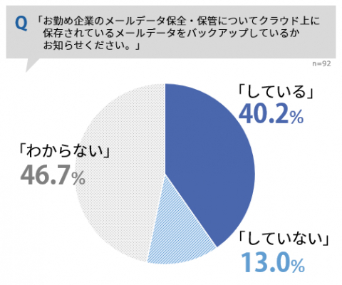 ・クラウドメールデータをバックアップしている企業は半数以下の40%