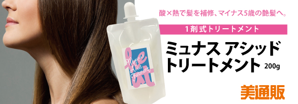 「美通販」では、低コスト・高品質の「ミュナス アシッドトリートメント」(株式会社レイナカンパニー)を、業界最安値を目指した美通販会員特別価格でご提供いたします。この機会にぜひお試しいただければと考えおります。