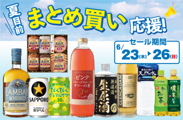 全国に185店舗で酒の専門店をチェーン展開する株式会社リカーマウンテン(本社:京都市)は、6月23日(木)~26日(日)の4日間、深夜営業店舗を除く120店舗で「夏目前 まとめ買い応援!セール」を開催いたします。
