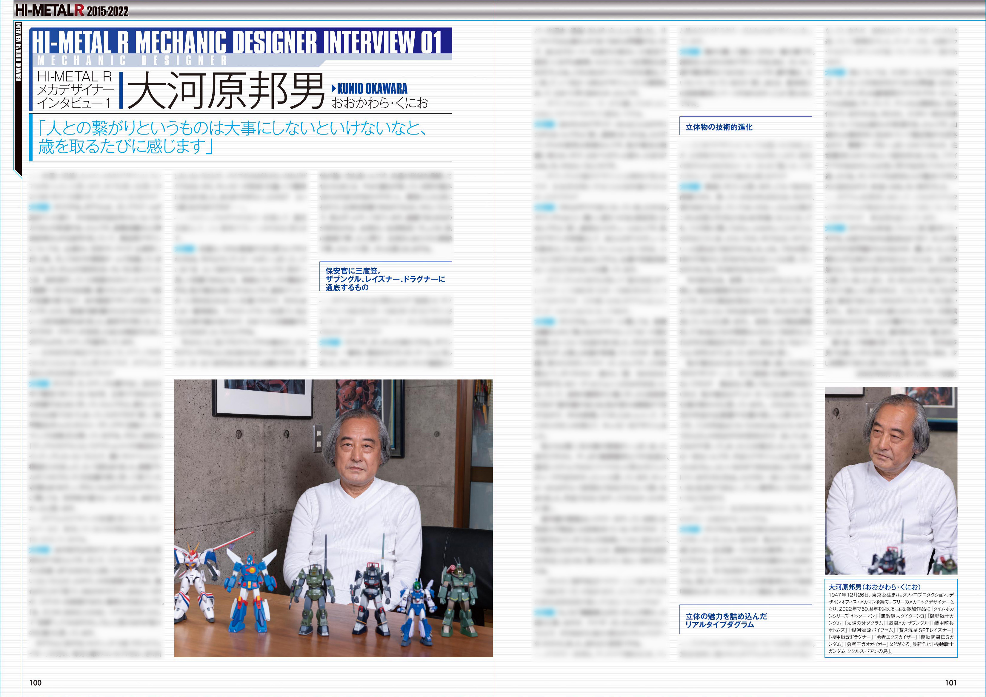 2022年内までに発売される「HI-METAL R」の全アイテムを網羅し、各アイテムのスタッフコメントやパッケージ写真を掲載いたします。前身ブランド「HI-METAL」「VF HI-METAL」のご紹介や、「HI-METAL R」最新情報のチラ見せも!また、大河原邦男氏、宮武一貴氏、河森正治氏のメカニックデザイナーインタビューも掲載いたします!