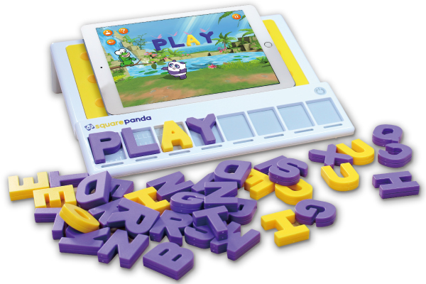 「英脳フォニックス」は、楽しく「フォニックス」が学べる英語知育玩具です。ボード上にスマホやタブレットを置き、ダウンロード済みのアプリを立ち上げることで、アプリ内のかわいいキャラクターたちと一緒に、ゲーム感覚で遊びながらすぐに学習をスタートすることができます。付属のアルファベット・ブロックはアプリと連動しており、バーチャルとリアルの融合を楽しみながら学びを深めることも可能です。初級から上級まで、ステップアップしながら少しずつ成長し、実践に強い「使える英語」の基礎を身に付けることができます。