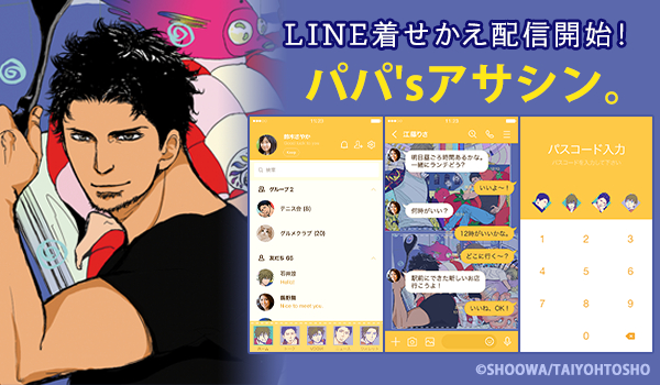 大洋図書×株式会社インクルーズが贈るLINE着せかえシリーズ第3弾は、SHOOWA先生の「パパ'sアサシン。」です!今後も大洋図書とインクルーズのコラボレーションにより、続々と大洋図書作品のLINE着せかえの新作配信を予定しております。是非お気に入りのLINE着せかえを見つけてみてください。