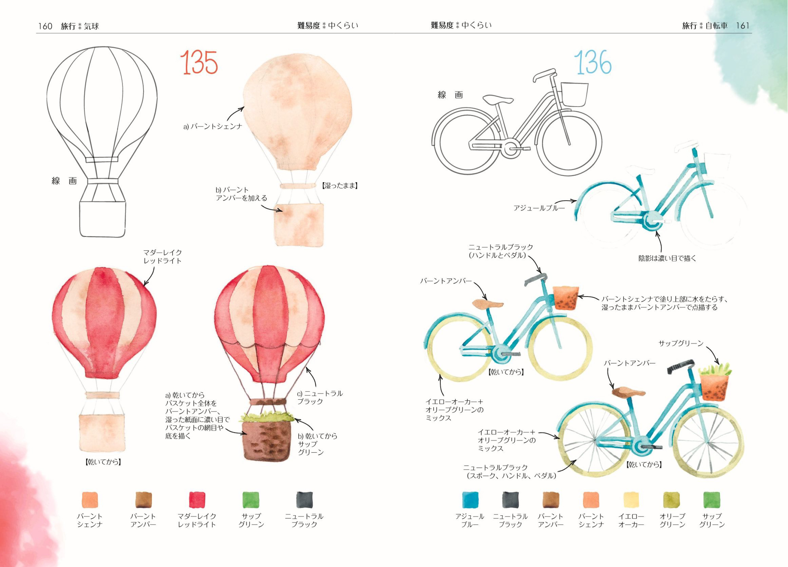 さらに、使う色は最小限に、簡単な手順で描ける工夫がたくさん盛り込まれているので、水彩画初心者にもおすすめです。