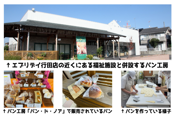 この福祉施設支援クレーンゲーム【毎日焼きたて!パンキャッチャー】 は、 エブリデイ行田店の近くにある福祉施設が運営する『就労支援のパン工房』パン・ド・ノアさんから、 「コロナ禍で売り上げが下がってしまったので駐車場でパンの販売をさせて頂けませんか?」と、頂いた1件のご相談に、「クレーンゲームで使用させて頂く方が多くのパンの数を消費できるのでは?」とエブリデイ行田店の店長五十嵐がご提案させて頂いたのをきっかけに誕生した取り組みで、 毎朝生地から作られた、無添加で、材料にもこだわった安心・安全な手づくりパンを仕入れ、クレーンゲームの景品として使用させて頂き、そのパン購入を通じて福祉支援させて頂く取り組みです。