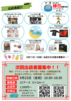 出店者さんを募集しています。詳しくは公式LINEでご確認下さい。