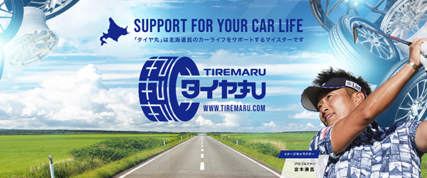 タイヤ丸ではイメージキャラクターとして、車好きで知られるプロゴルファーの宮本勝昌氏を起用しております。 特にタイヤ選びにはこだわりを持たれている宮本氏も「充実の販売&サポート体制が魅力です。」と絶賛しているほど、「充実・安心・便利」なサービスとなっています。