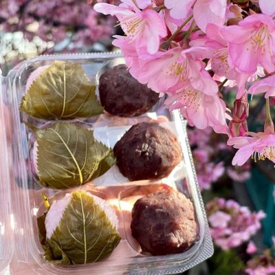春には桜葉のほどよい塩味と餡の一体感が楽しめる「桜もち」