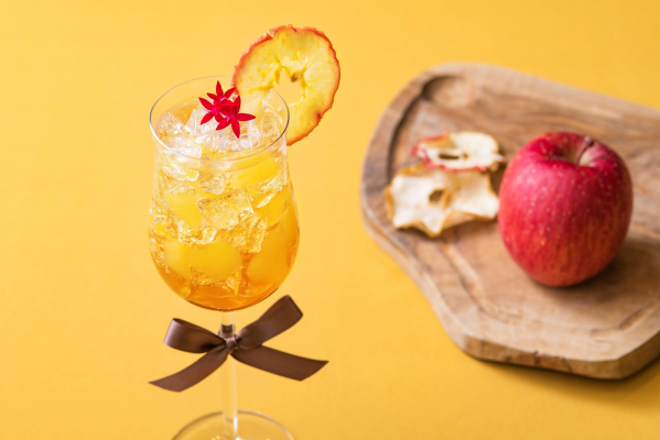 りんごのピューレ、りんごのコンポート、ドライアップルを使用した、爽やかなりんごの香りを存分にご堪能いただけるモクテルです。ジンジャエールと合わせて、さっぱりとした味わいに仕上げました。ごろっと入れたコンポートと一緒にお楽しみください。トップに飾った星のような形のペンタスの花言葉には、「願い事」や「希望が叶う」という意味があります。まるでゴールドのように煌びやかな黄色のモクテルにぴったりです。オータム・アフタヌーンティー限定、追加オーダーにて提供いたします。
