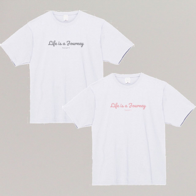 胸のLife is a Journeyテキストデザインはグレー・ピンクの2色展開となっており、夫婦やカップルでのペアコーデが楽しめます。