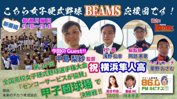一般社団法人未来のチカラ育成協会はFMルピナスのYouTubeチャンネルで毎週月曜日、「こちら女子硬式野球ビームス応援団です!」という番組を始めました。第2回目の放送は8月8日、19時30分からです。