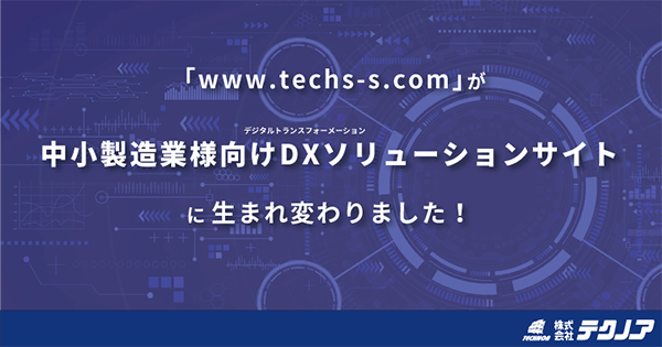 中小製造業様のIT戦略パートナーとしてDXを推進する株式会社テクノア(本社:岐阜県岐阜市、代表取締役:山﨑耕治)は、生産管理システム『TECHS(テックス)シリーズ』サイト「www.techs-s.com」(以下、本サイト)を新たに【中小製造業様向けDXソリューションサイト】としてリニューアルし、8月1日に公開いたしました。