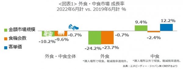 外食・中食市場情報サービス『CREST(R)*1』を提供するエヌピーディー・ジャパン株式会社(東京都港区、クリストス・クリストフォロー代表)は、外食・中食市場2022年6月の動向分析レポートを2022年8月9日に公表します。