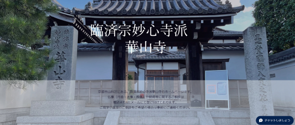 臨済宗妙心寺派 華山寺は、ヨガや写生教室などのイベントだけではなく、寺院葬も承っております。近年、生活困窮者向けの葬儀など小規模な葬儀が増えている中、寺院葬であれば、民間の葬儀場などで家族葬を利用するよりも低価格でご葬儀が行えます。華山寺の本堂には祭壇が設置していますので、葬儀社に依頼する際の祭壇に生花を置くこと費用が抑えられます。