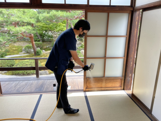 また、畳に施工する事により、抗菌・抗ウイルス効果もあると聞いてびっくりしました。裸足でご来寺していただける皆様を守ることに繋がると思い導入を決めました。