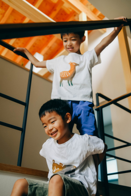 裏表なく染まる「注染」と、裏表前後のない「縫製」で、子ども用Tシャツをつくりました。