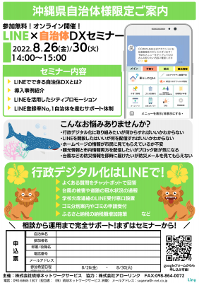 (株)琉球ネットワークサービスは、「LINE×自治体DXセミナー」と題し、沖縄県の自治体様限定でのWebセミナーを開催致します。