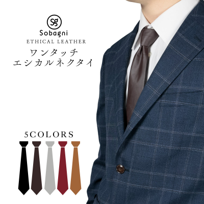 エシカルレザーで首元おしゃれ!!結ぶ手間なしワンタッチ ネクタイ