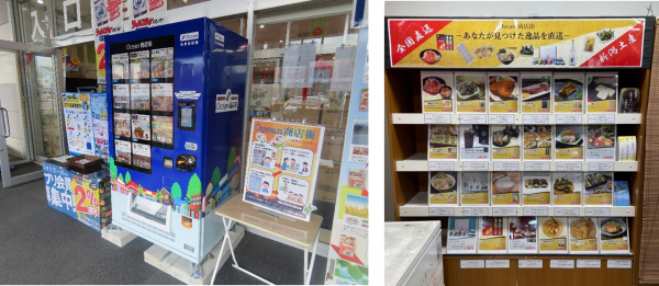 左:「チャレンジャー」新潟中央インター店の『Ocean商店街』冷凍自動販売機 右:旅館「海風亭 寺泊 日本海」館内