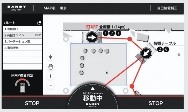 あとは発進ボタンを押せば経路通りに自律走行を始めます。