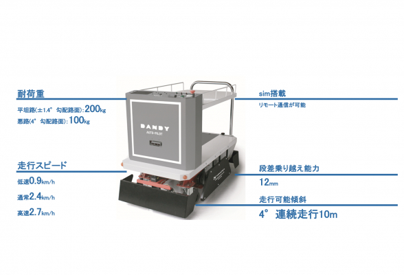 空港カートや台車・リフトを製造販売する花岡車輌株式会社(本社:東京都江東区 代表取締役社長:花岡 徹)は、自動運搬のエントリーユーザー向けに、路面の補修が最小限となる段差やスロープを越えられる自律走行ロボット「ダンディオートパイロット」を9/1より月額のサブスクリプションサービスで発売いたします。