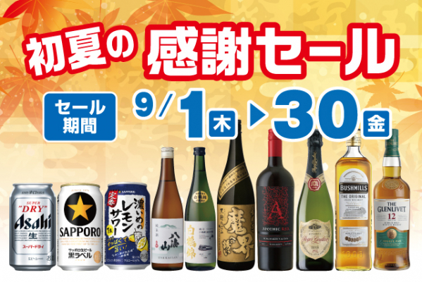 全国に186店舗で酒の専門店をチェーン展開する株式会社リカーマウンテン(本社:京都市)は、9月1日(木)~30日(金)の期間、「初秋の感謝セール」を開催します。