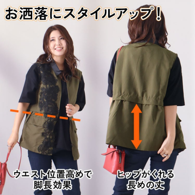 荷物がたくさん入る、という容量の高さだけでなく、スタイルアップも叶うのがこのベストの長所。