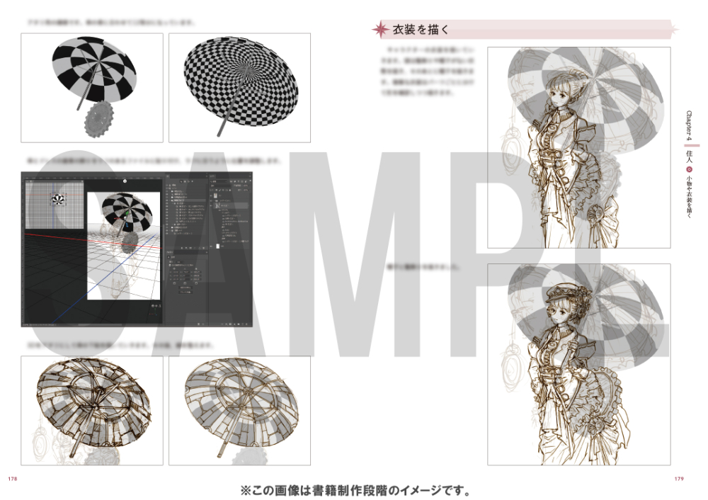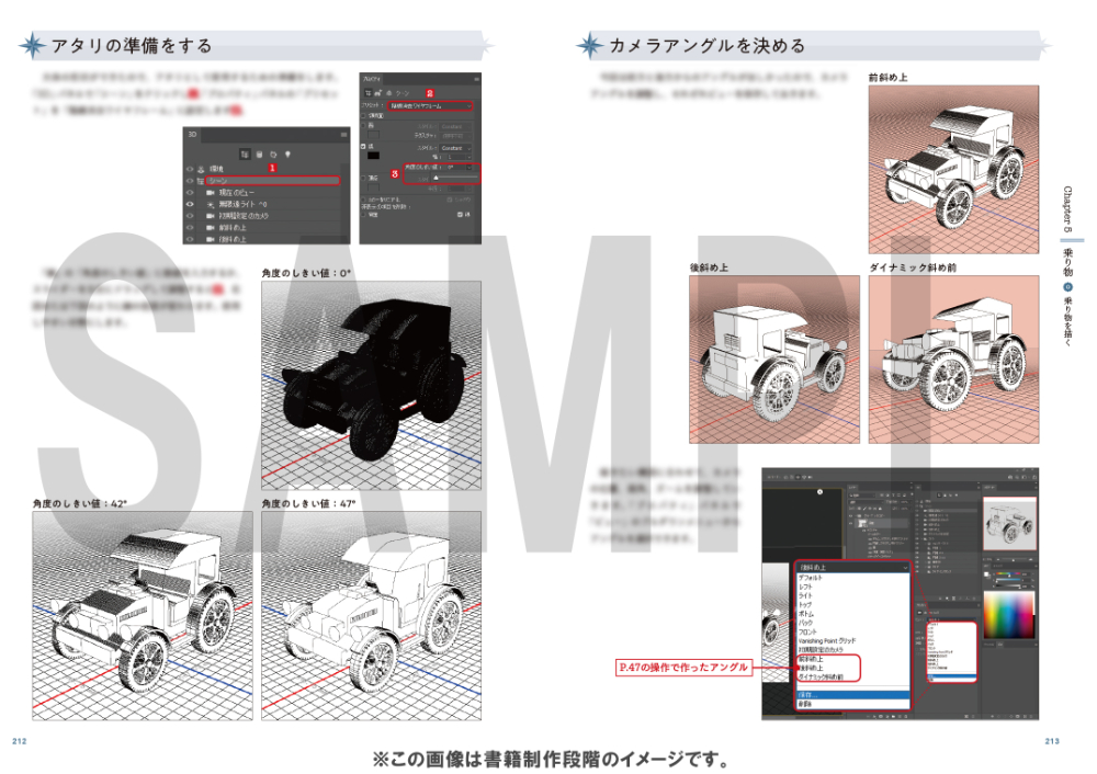 ※本書のラフ(下描き)制作やオブジェクト制作の一部で使用している「Photoshopの3D機能」はバージョン22.5をもって廃止予定となっております(詳しくはAdobe社のHPをご参照ください)。下描きのPSDデータ(レイヤー結合状態のもの)をダウンロードデータとして付属していますが、解説および図版と同じように読み進めたい方は、Photoshopの3D機能が搭載されているバージョン(お勧めはPhotoshop 22.2)をインストールしてご使用ください。