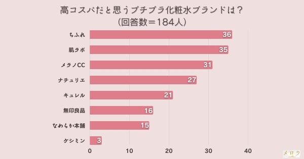 「高コスパだと思うプチプラ化粧水ブランドは?」とアンケート調査した結果、1位は『ちふれ』でした。