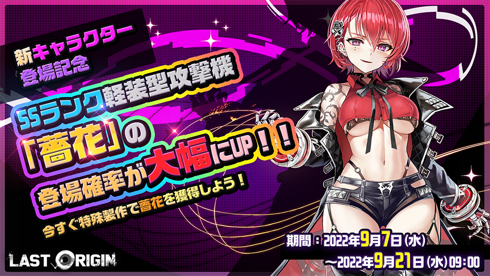 PiG Corporation(本社:韓国ソウル、以下PiG)は、好評配信中の次世代美少女×戦略RPG『ラストオリジン』において、2022年9月7日(水)より、新シナリオイベント「蓮花と陰に咲く薔薇」が開催となりましたのでお知らせいたします。また、新しいバイオロイド1体の登場とスキン2体が追加、製作確立アップや既存のスキン割引などのキャンペーンも開催となりましたので併せてお知らせいたします。