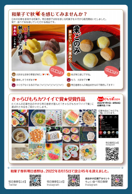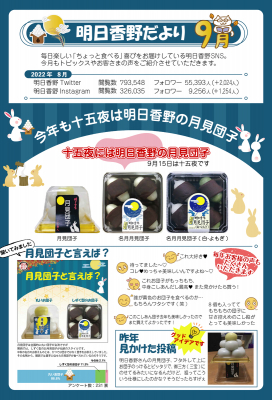 #明日香野 #いつでも明日香野 #ちょい食べ #和菓子 #明日香野だより #広報誌 #月見団子 #秋の和菓子 #大人の団子