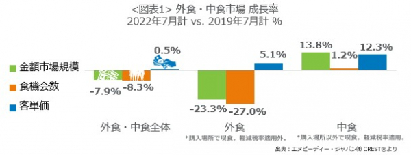 外食・中食市場情報サービス『CREST(R)*1』を提供するエヌピーディー・ジャパン株式会社(東京都港区、クリストス・クリストフォロー代表)は、外食・中食市場2022年7月の動向分析レポートを2022年9月8日に公表します。