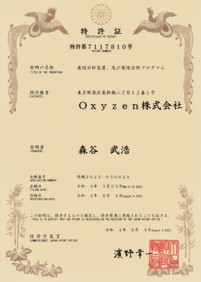 そのような状況の下、Oxyzenでは個人を特定しない情報のみを利用した詳細分析の手法を確立し、この度の特許の登録に至りました。
