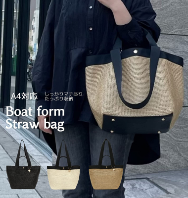 ハリのある繊維を丁寧に編み込み、バッグの素材感を演出、ハンドル部分にはグログランテープ仕様し、