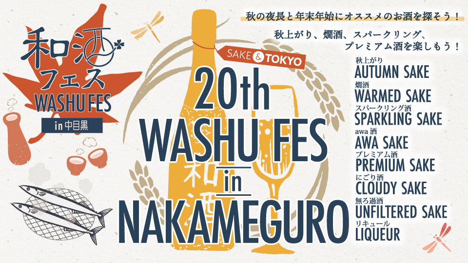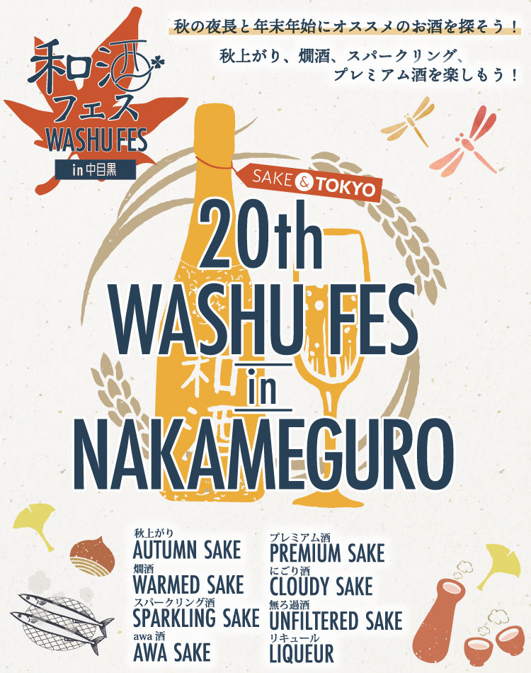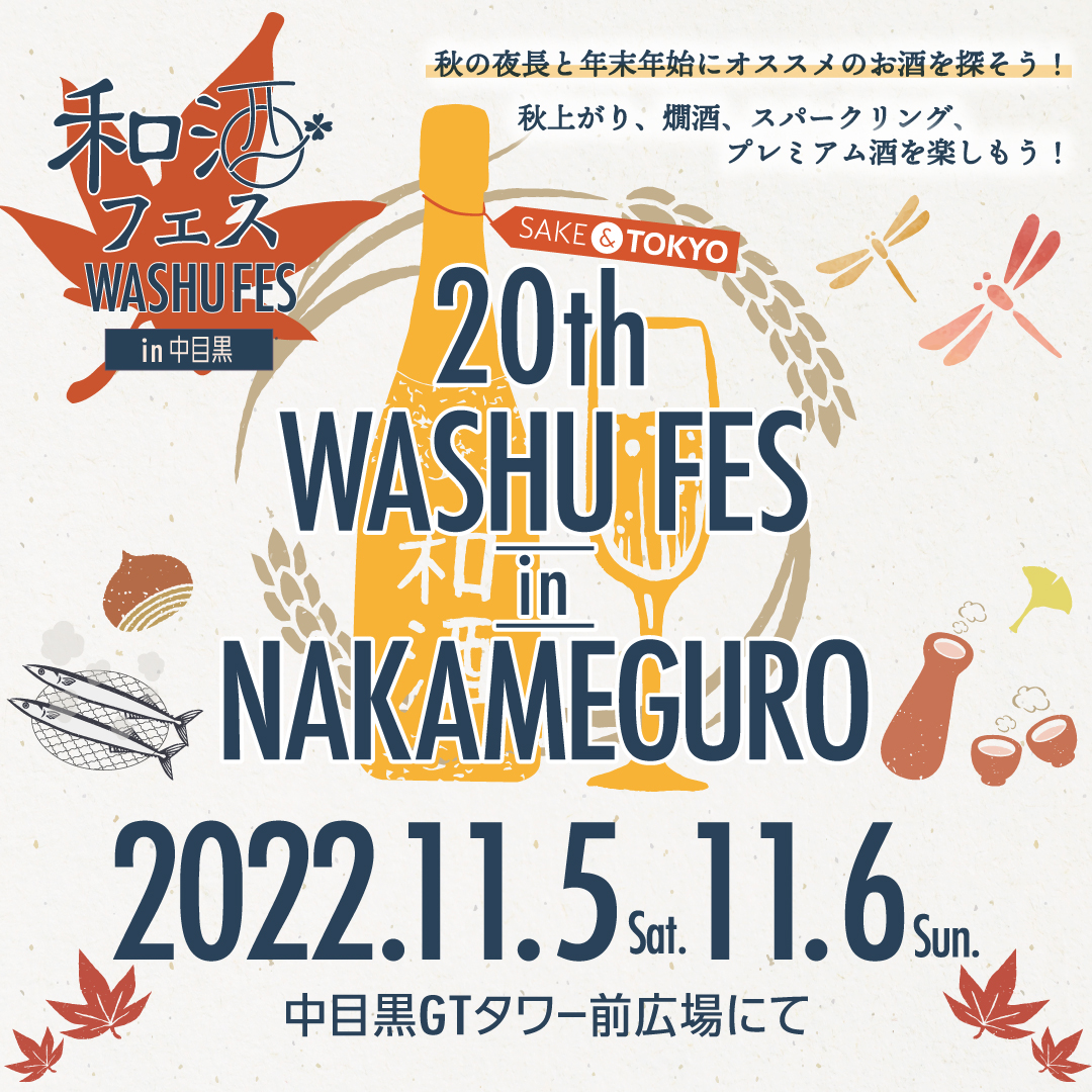 地域創生を応援する和酒フェス実行委員会は、『第20回和酒フェスin中目黒』を東京メトロ日比谷線と東急東横線(東京メトロ副都心線直通)の中目黒駅に直結する中目黒GTタワー前広場(東京都目黒区)で11月5日(土)と6日(日)に、第1部は12時から14時10分、第2部は15時から17時10分に開催いたします。