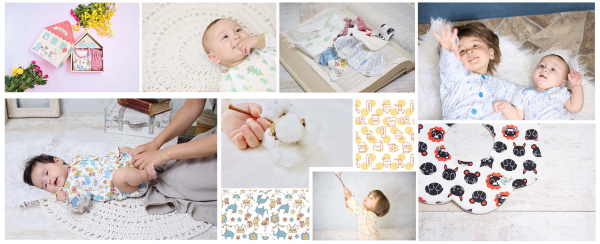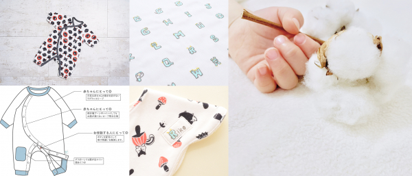 私たちは、着用する赤ちゃんのことはもちろん、お世話するママ・パパの負担を少しでも軽減できたらいいなと考えました。例えば、ロンパースの股部分のボタンの掛間違いを軽減するために、部分的ににボタンの色を変えたり、肌着の紐部分をボタンに変更など、簡単にお着換えが出来る様にこだわりを沢山詰めております。