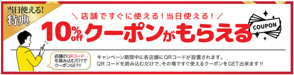 【特典2 店舗に行って10%OFFのクーポンをゲット!!】