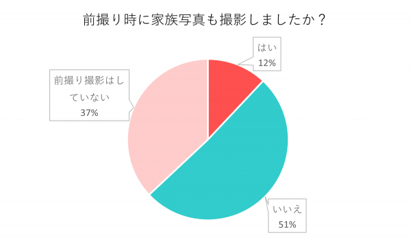 「はい」が12%、「いいえ」が51%、「前撮り撮影はしていない」が37%でした。