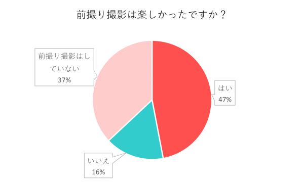 「はい」が47%、「いいえ」が16%、「前撮り撮影はしていない」が37%でした。