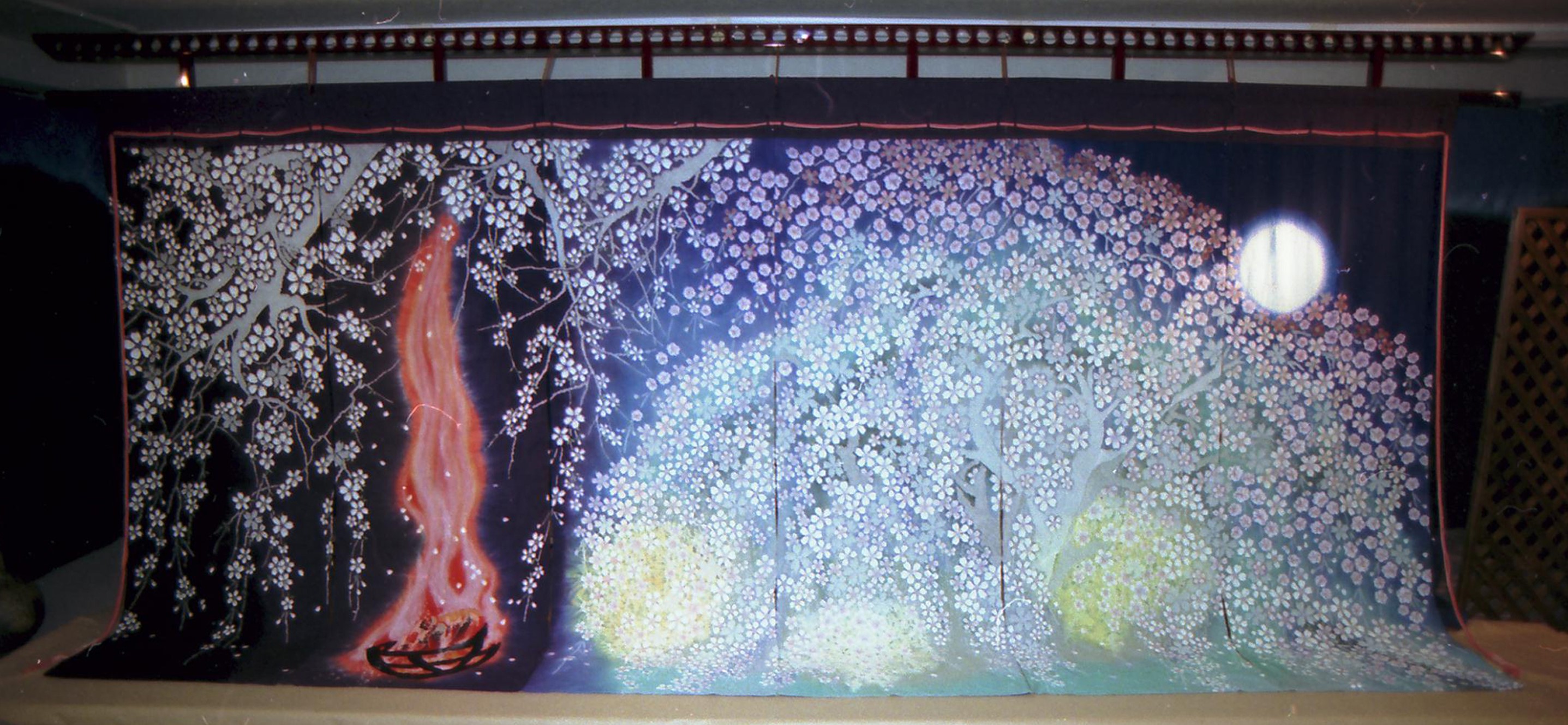 美しくライトアップされた秋の紅葉を表現した巨大な几帳を制作。