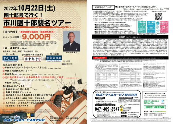 本ツアーでは京成上野駅から「團十郎号」に乗車して京成成田駅に向かい、