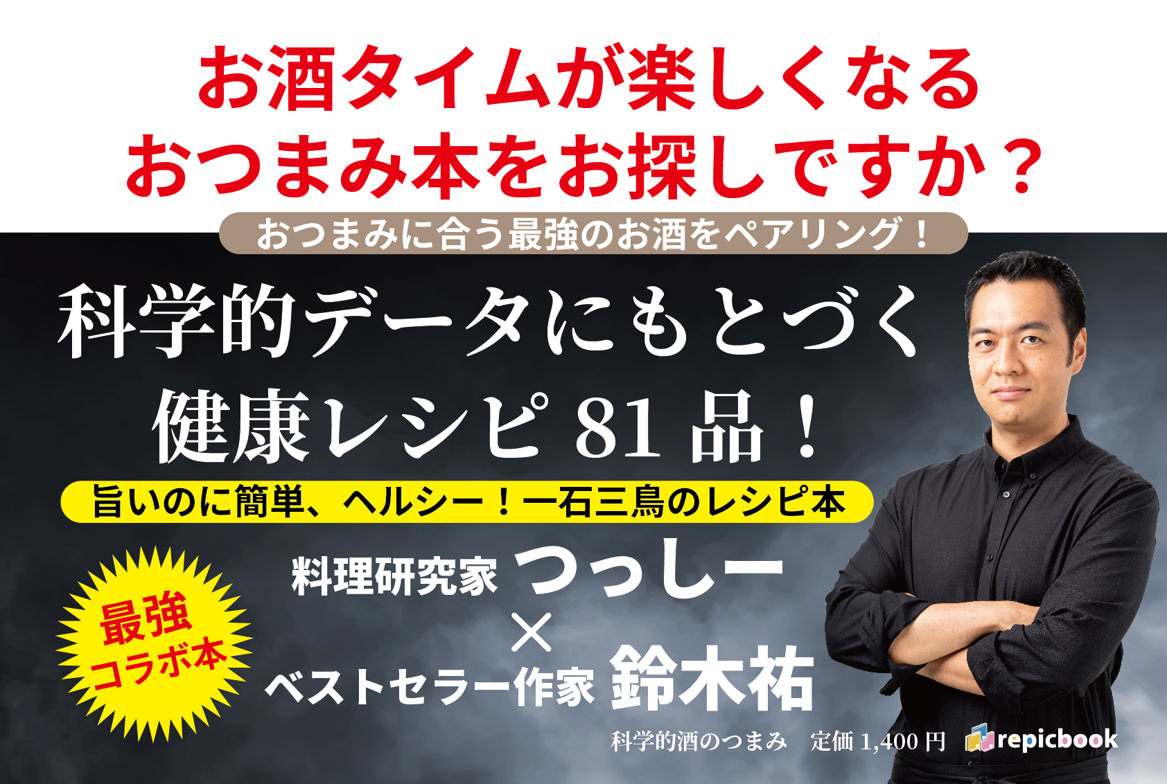 実用書や児童書を中心に刊行している出版社、repicbook(リピックブック)株式会社(本社:埼玉県志木市、代表取締役:諏訪部 貴伸)は、メンタリストDaiGoの専属シェフであり料理研究家のつっしーと、『ヤバイ集中力』『無-MU-』などの著者である鈴木祐とが初コラボしたおつまみ本『科学的 酒のつまみ』を、2022年9月30日(金)より全国の書店で発売します。