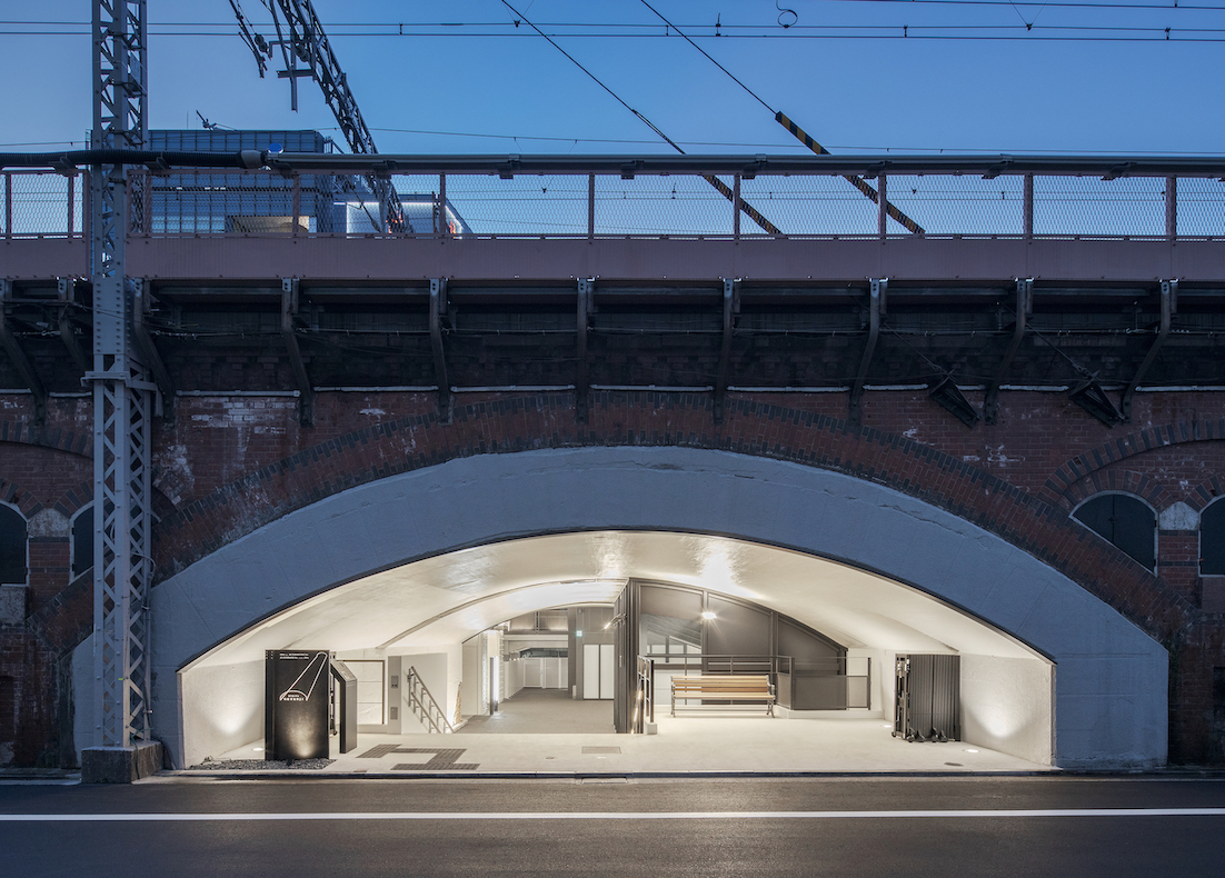 東京の中心地である日比谷・銀座の「奥」にあることに加え、高架下通路の秘めたムードを「路地」という言葉に置き換えることで命名された日比谷OKUROJIは、JR東日本(山手線、京浜東北線、東海道本線)と、JR東海(新幹線)が通る鉄道高架橋の下を300メートルにわたる施設です。1910年(明治43年)にベルリンの高架橋をモデルにドイツ人技師の指導のもと建設された象徴的な煉瓦アーチは、現役の高架橋としても日々鉄道の運行を支えています。