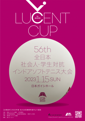 「ルーセントカップ 全日本社会人・学生対抗 インドアソフトテニス大会」は、1年間を通して各大会で活躍した社会人および大学生のうち、優秀な成績を残した男子7ペア、女子5ペアがチームを組んで争う団体戦。同日東京体育館で開催される「ルーセントカップ 東京インドア 全日本ソフトテニス大会」と並び国内トップクラスの大会です。第54回、第55回は新型コロナウイルスの影響で中止になっており、3年ぶりの開催です。