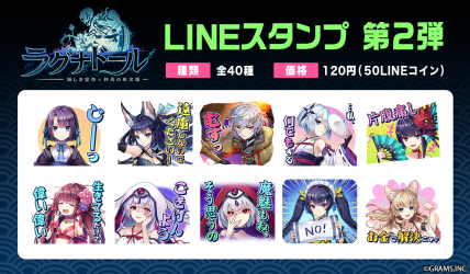 ヒト型に進化した妖怪たちがニンゲンを滅ぼす!?超クオリティ本格オンラインRPG「ラグナドール 妖しき皇帝と終焉の夜叉姫」のLINEスタンプ第2弾が販売開始!美麗なキャラクター達がトークを彩ります♪