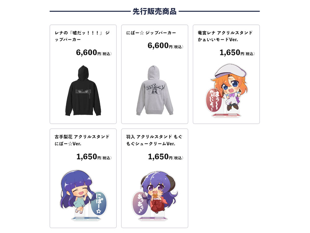 コラボカフェ期間中、物販コーナーにて「ひぐらしのなく頃に」など07th Expansion作品の関連商品を販売いたします。