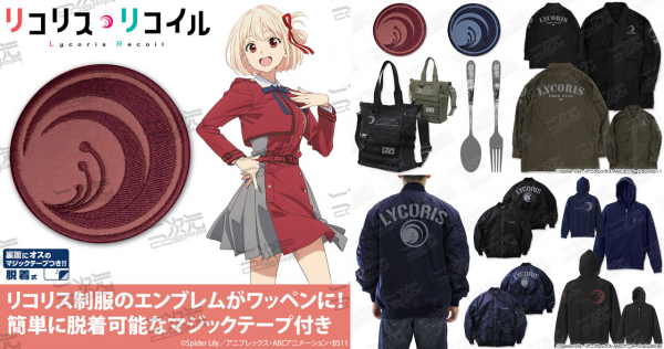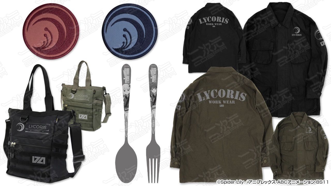 日常に溶け込む"リコリス"デザインの「ファティーグジャケット」をはじめ、「ファンクショナルトートバッグ」、合わせてカスタムも楽しめる"リコリス"ファースト、セカンドの「ワッペン」など新グッズが多数ラインナップ。