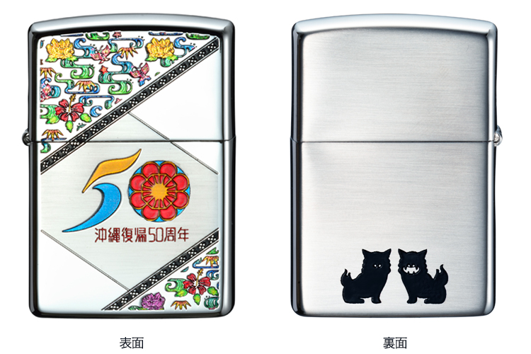 沖縄の復帰50周年を記念してジッポを発売します。沖縄のお祝い品なので、沖縄のドンキホーテ、ハッピーラボラトリー販売サイトのみの販売に限定させていただききます。お祝いに相応しいデザインで、必ずご満足いただけるかと思います。